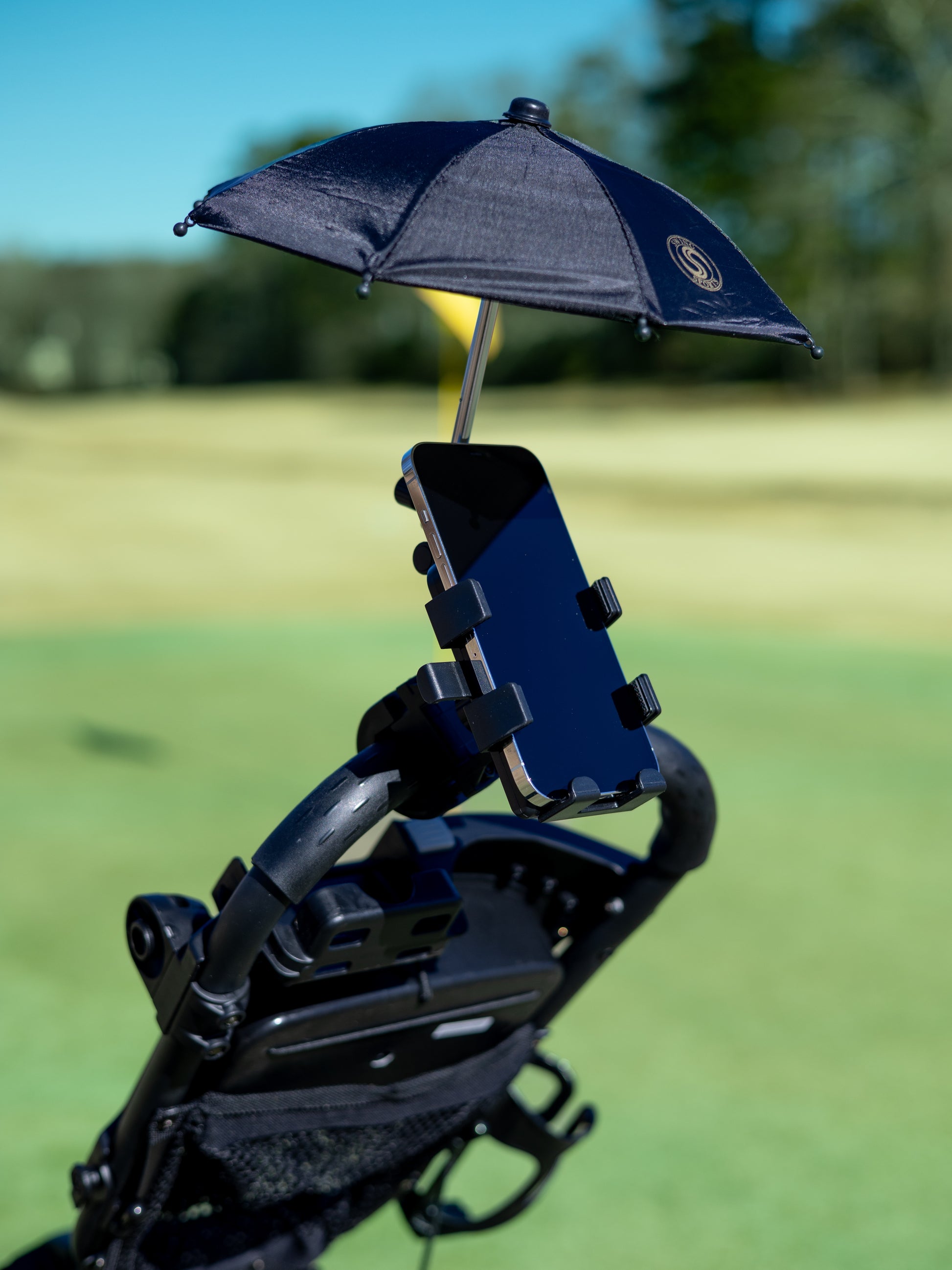 Features an umbrella to shield your phone from the sun's glare and heat.