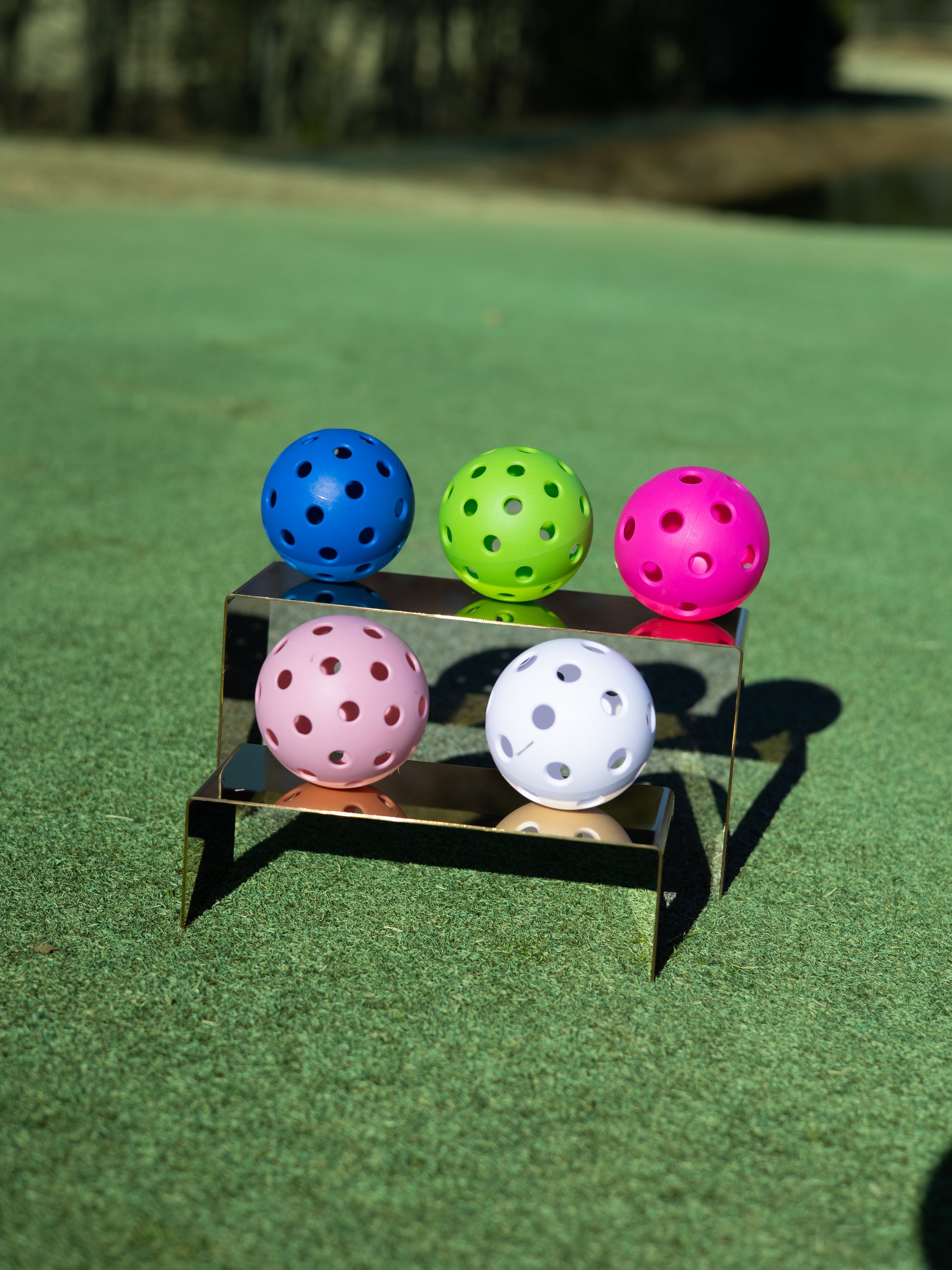 Outdoor Pickleballs are offered in the following colors: White, Royal Blue, Light Pink, Neon Green & Fuchsia Pink.